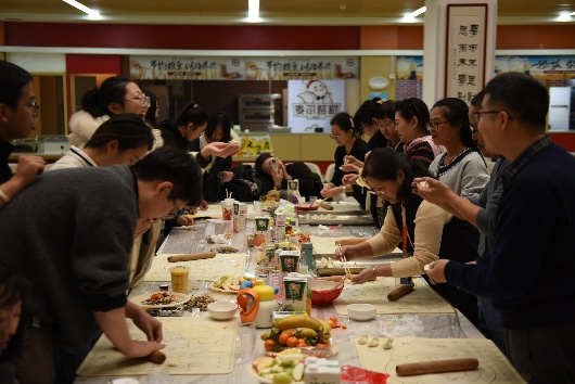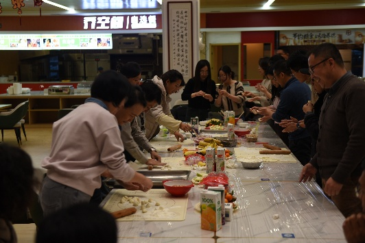 在包饺子环节中,教职工们以小组为单位,相互配合、默契协作,从擀皮、包馅到摆盘,各个环节欢声笑语不断。大家充分发挥创意,制作出形态多样、富有寓意的饺子作品,现场还特别设置了“最美创意饺子”评选,进一步激发了大家的参与热情与团队创造力。